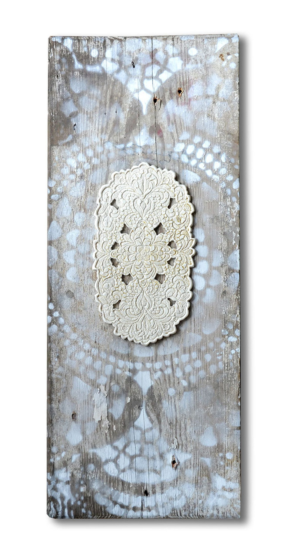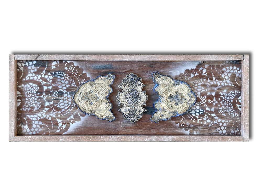 Ceramic street art is the core of my work. It was a ceramic object with a lace motif that was the first work I left on the street in 2009. Each ceramic lace is made in duplicate. The first copy is glued somewhere in public space, in one of the many cities visited by me. The second copy becomes the heart of the work presented below.