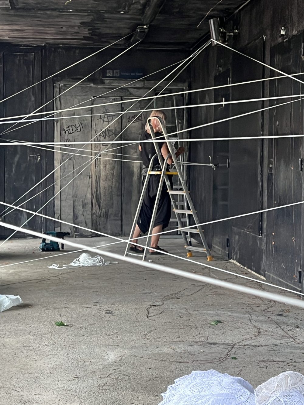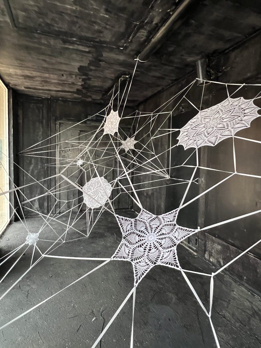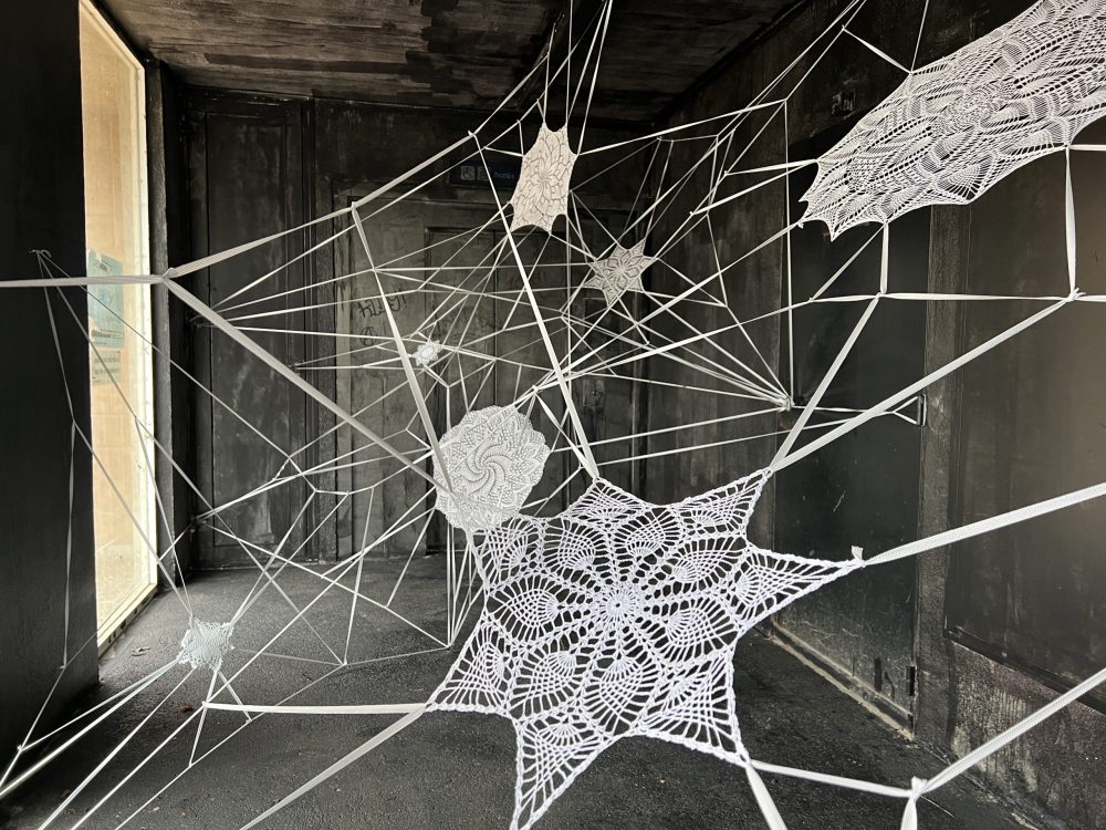 My new installation for the festival “He(ART)4all” festival in Laon, France, using laces made by Alina Krupa.