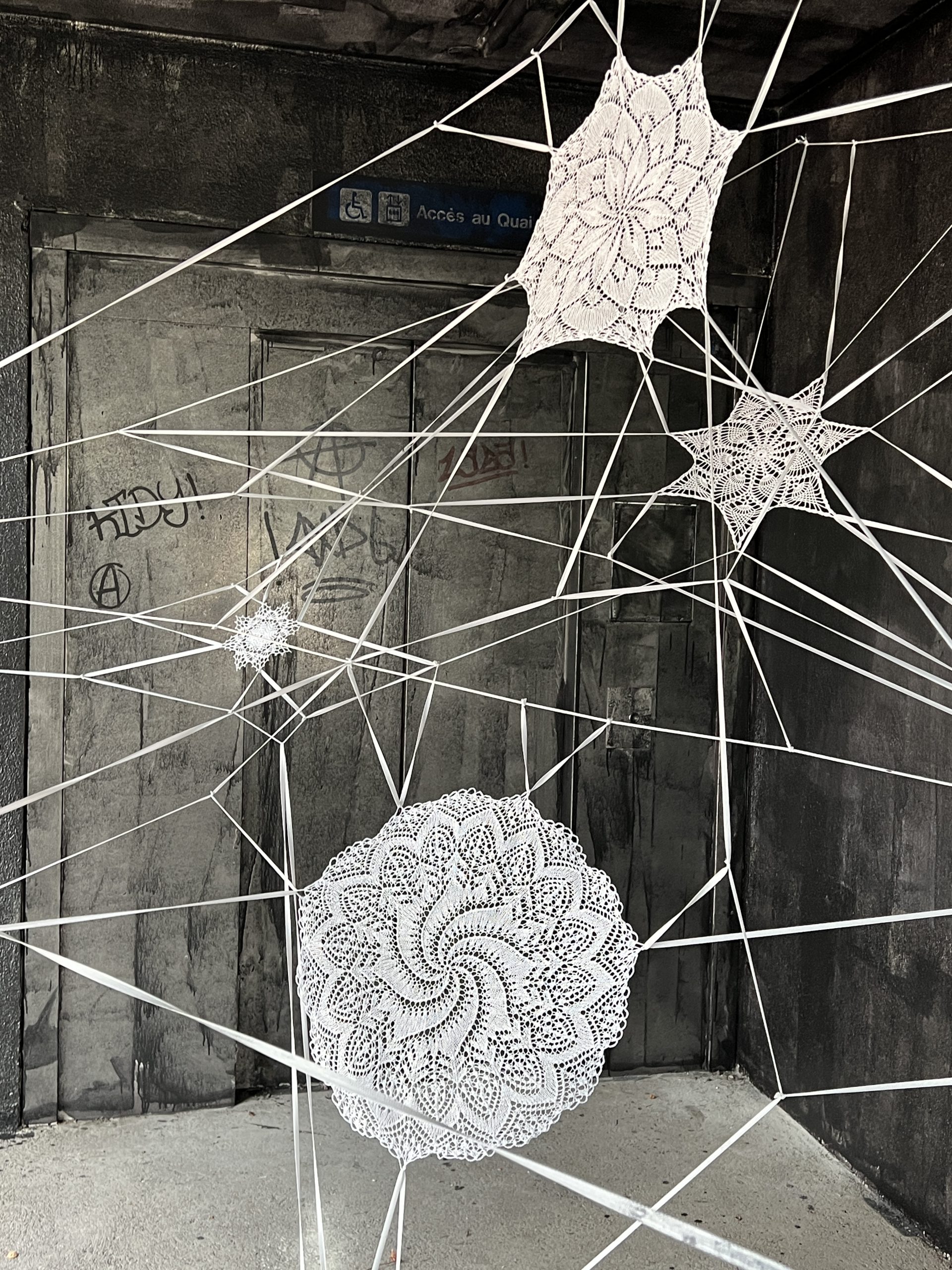 My new installation for the festival “He(ART)4all” festival in Laon, France, using laces made by Alina Krupa.