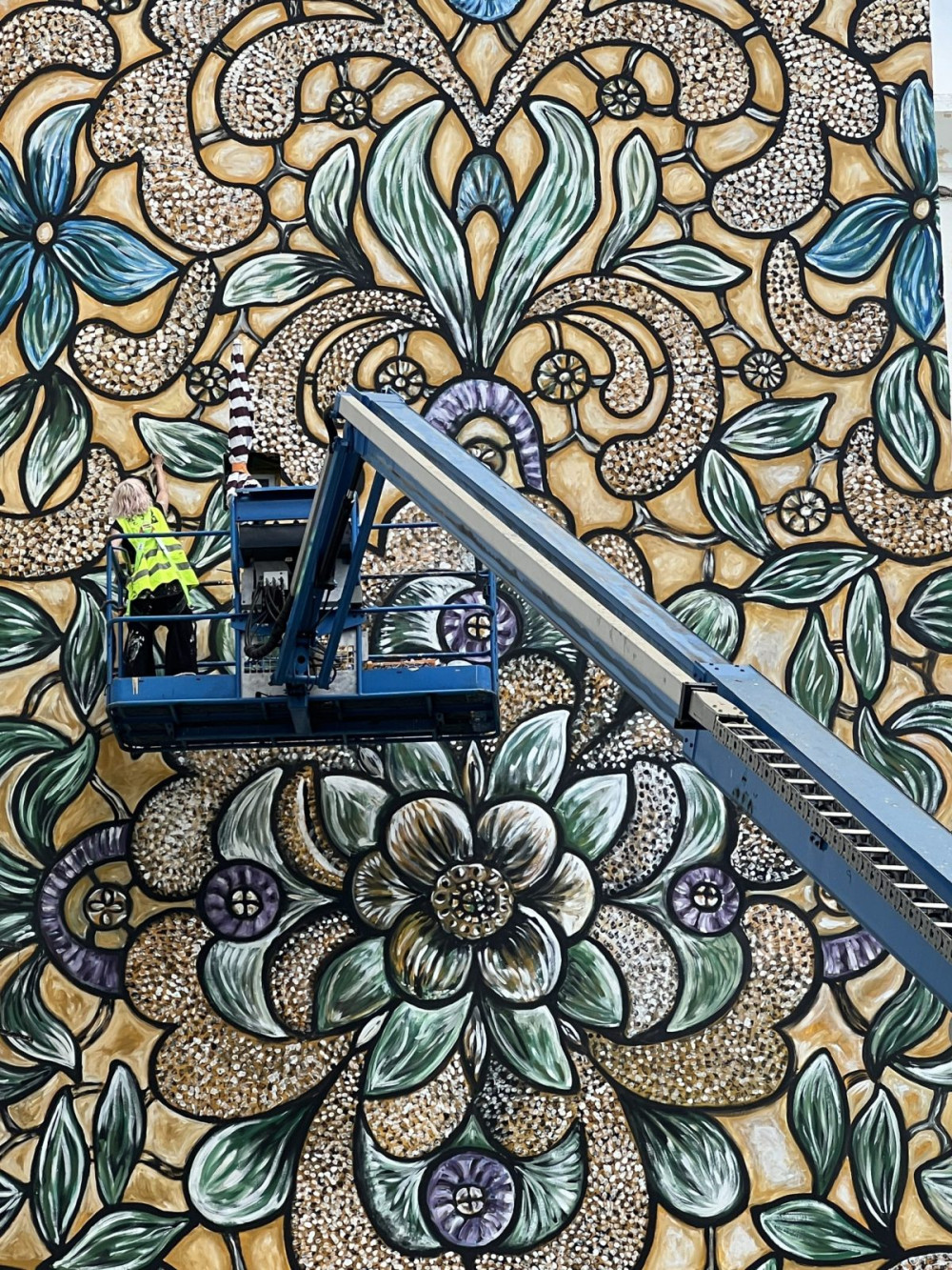 By painting local lace patterns, I aim to honor the rich tradition of lace-making, which can span several centuries. While searching for lace in Morocco, I discovered that much of it was influenced by French designs. This led me to innovate and create something unique. Morocco is renowned for its ceramics, with intricate ceramic patterns found everywhere, even in modern architecture. Thus, I decided to paint ceramics that would forge a connection between our cultures.