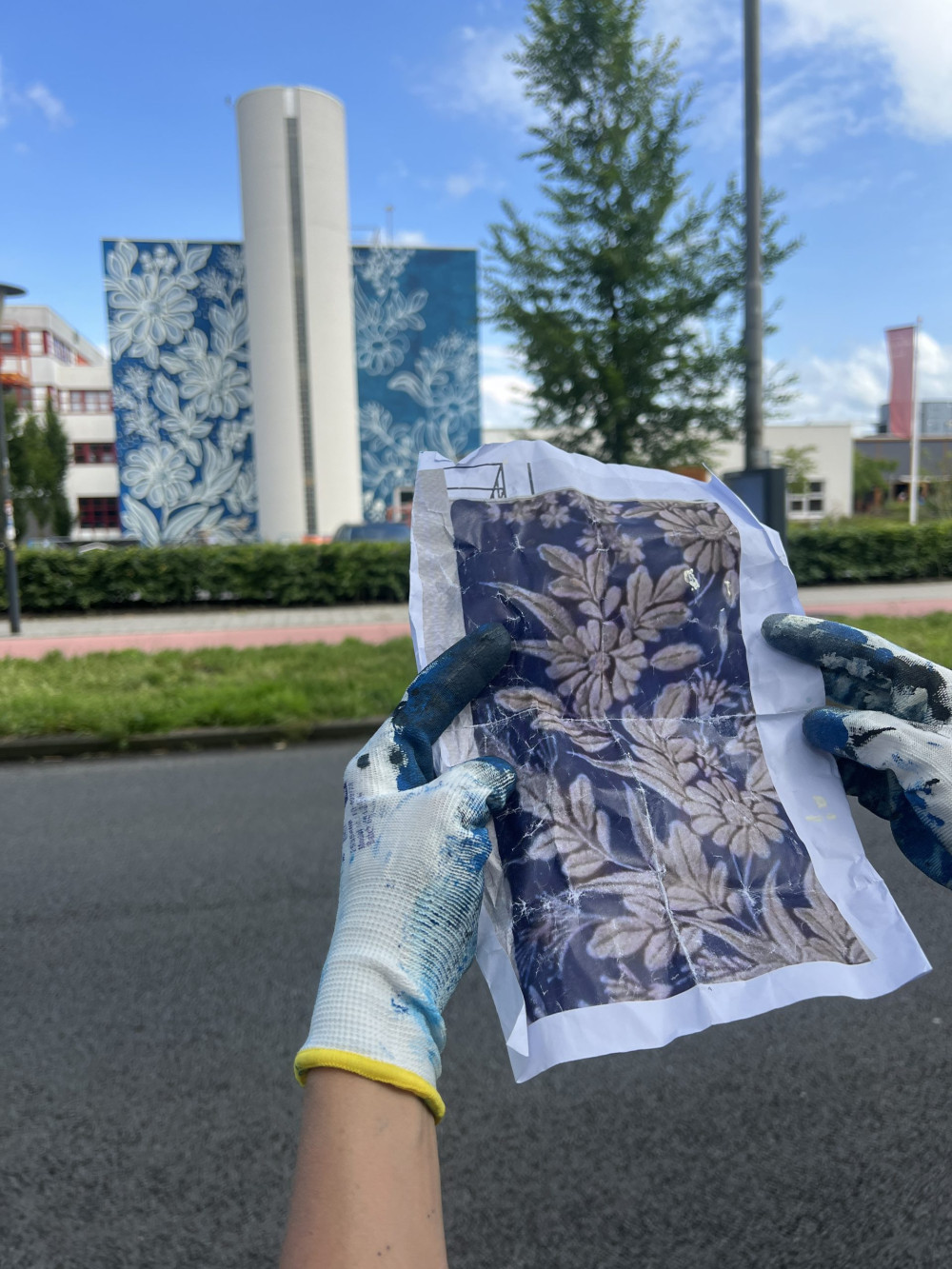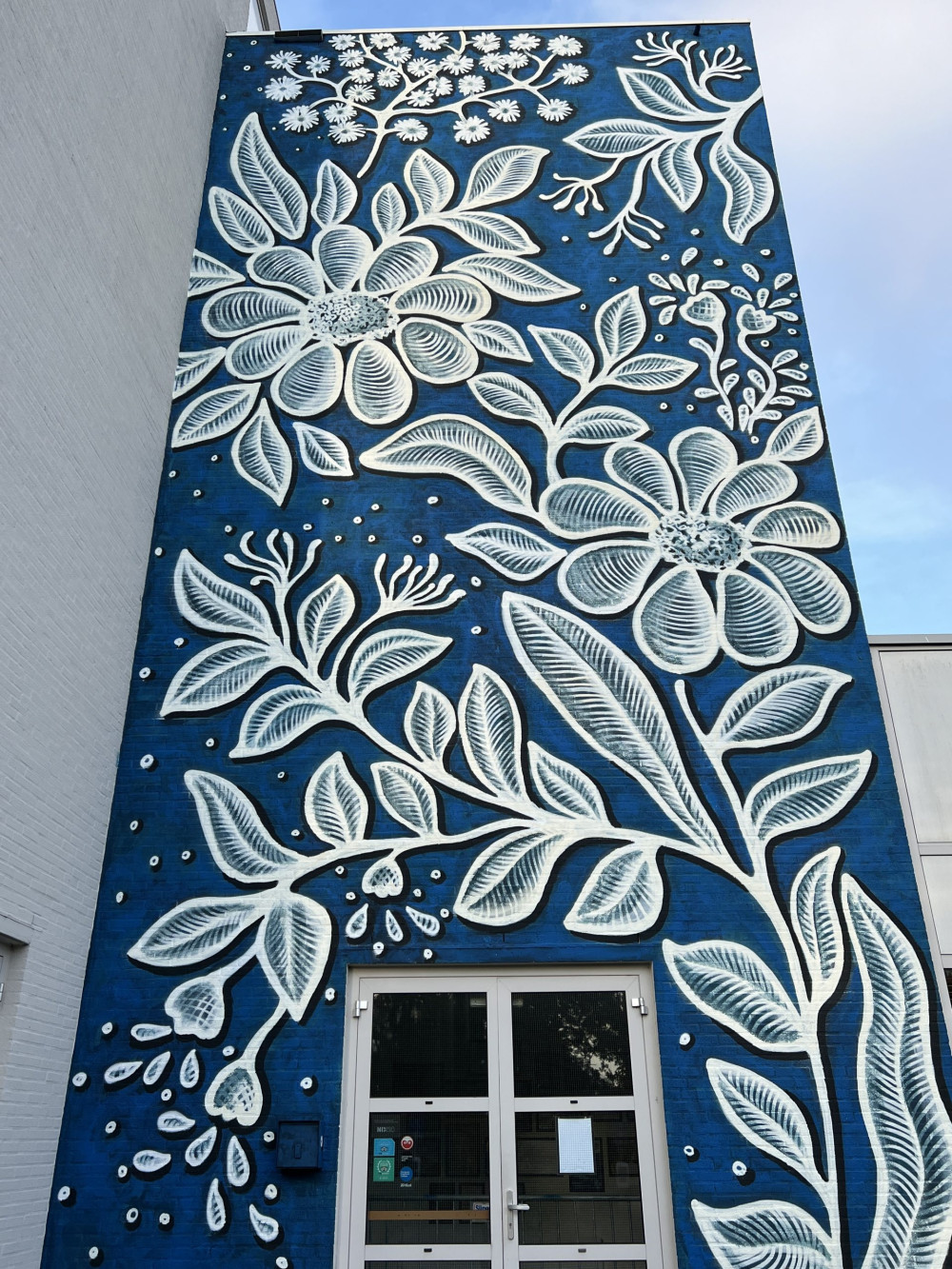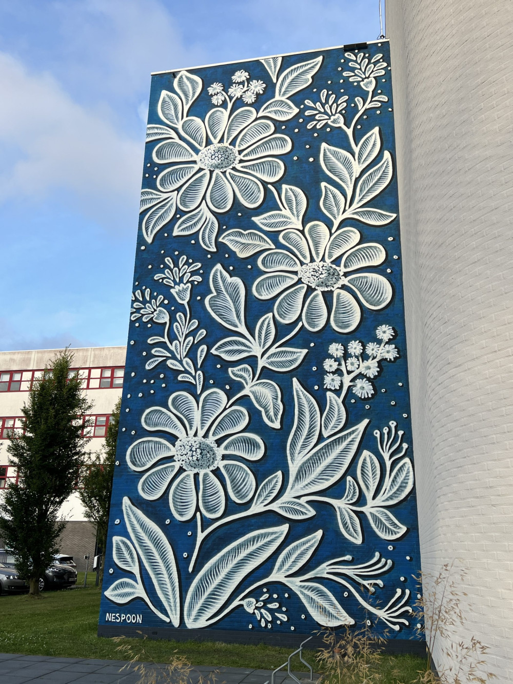 The mural was inspired by embroidery on a 19th-century costume from the museum’s collection. Thank you to Peter Ernst Coolen from Street Art Today for the invitation, Irene Kromhout from the museum for consultation, Serge Hollander and Siegriet de Vries from Writers Block for their care and help in producing the mural, and all the wonderful people I met in Leeuwarden. Special thanks to  NHL Stenden University for providing the wall and hosting at the Notiz hotel.