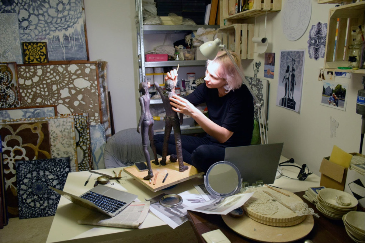 Statue, bronze, 57 cm / Hand painted pedestal / Digital print / Stickers