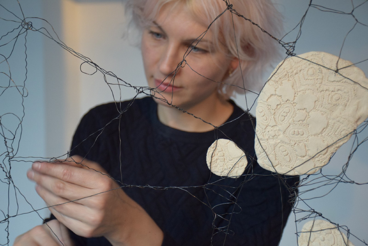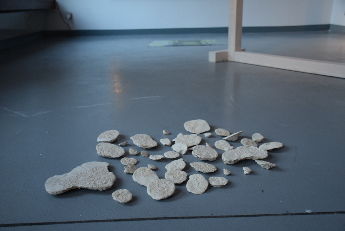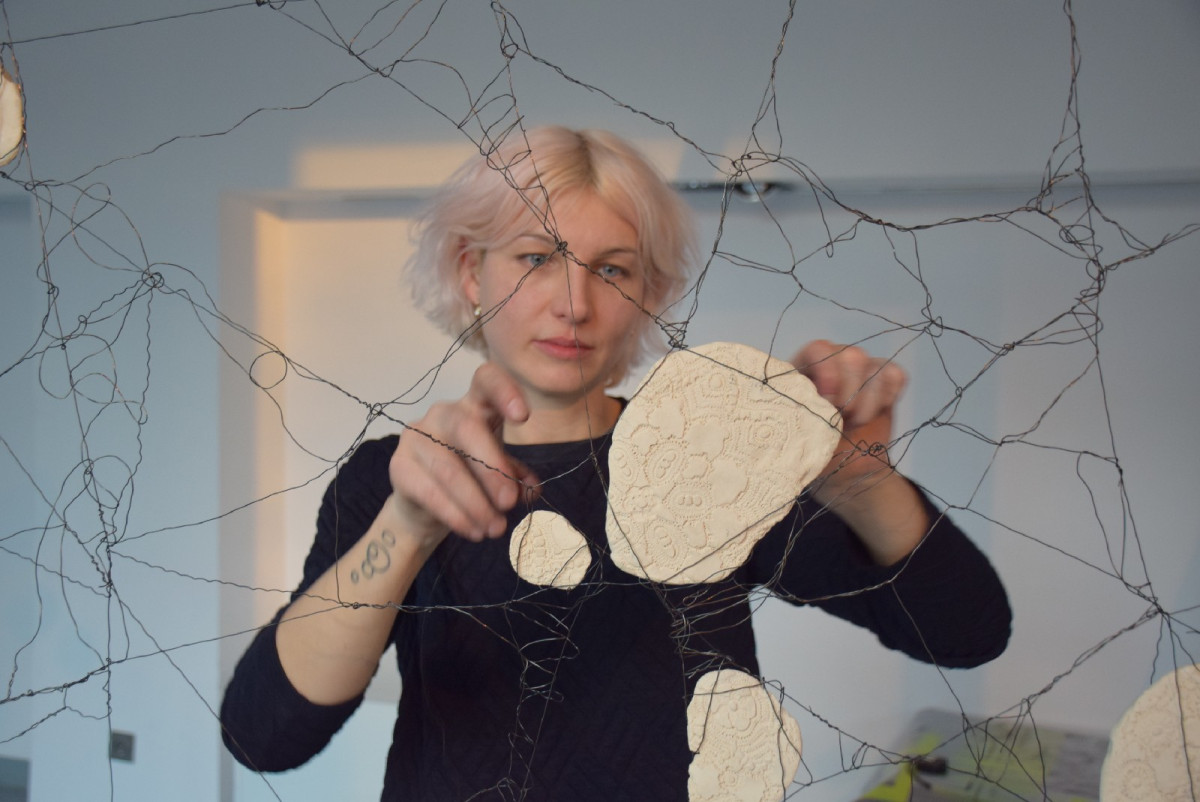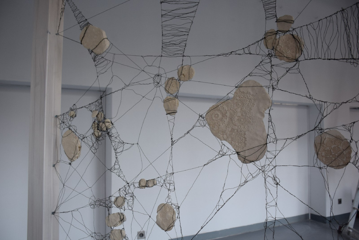 I used part of those clay scabs to make an installation presented at an exhibition in the BWA Gallery in Wrocław. I created structures to represent the blood-flow that would nourish and heal the dead places. The wound can heal and will rebuild damaged tissue.
