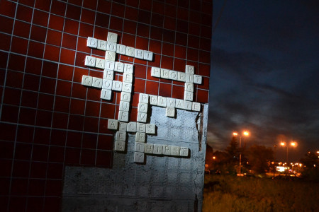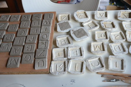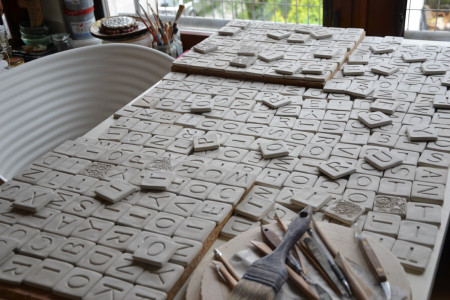 I made more than 400 ceramic scrabble letters. Each installation was devoted to a different documentary film and the cross-words corresponded to issues presented in the movie.
