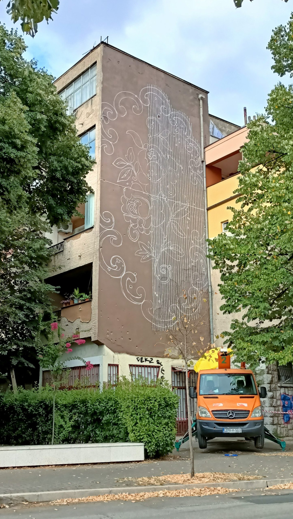 The lace pattern I chose was referred to as “local” by everyone to whom I spoke. “My grandmother had exactly this one on the TV, on the couch.” Or “My mom used to embroider this pattern .” I heard it again and again. I was wondering if, like many other artists working for Street Arts Festival Mostar I should paint over those bullet holes, paint something nice and forget about the past. I could not.